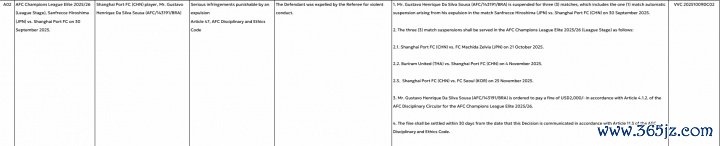 1-古斯塔沃因在对阵广岛三箭时被罚下,将被禁赛三场,其中包括一场自动停赛,这三场禁赛将在25-26赛季亚冠小组赛中实施。