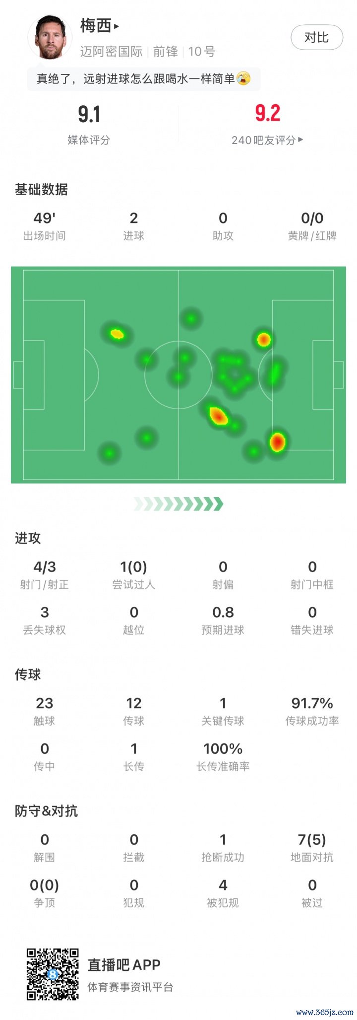梅西半场数据: