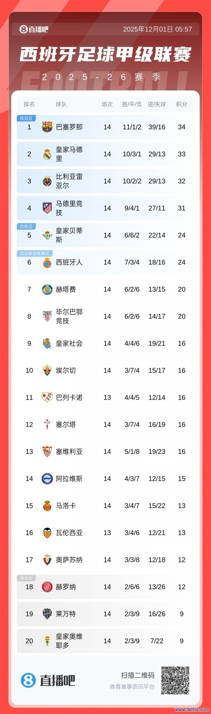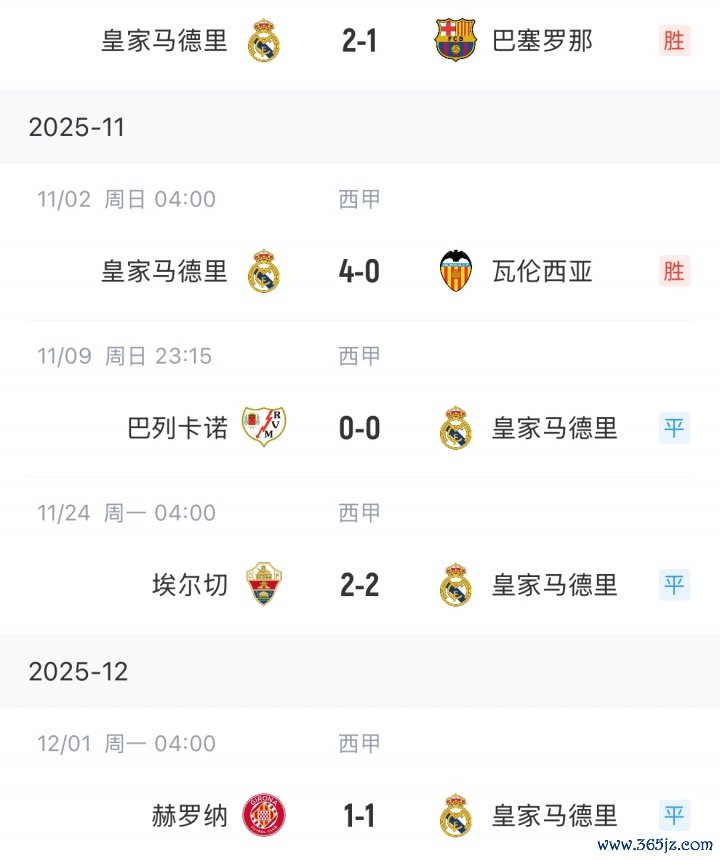 12月01日讯 西甲第14轮,皇马1-1客平赫罗纳,让出榜首。