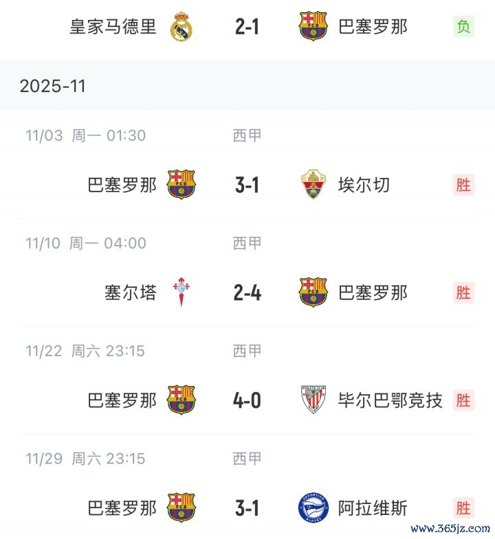 巴萨输掉国度德比后获得联赛四连胜,刻下越过皇马1分。