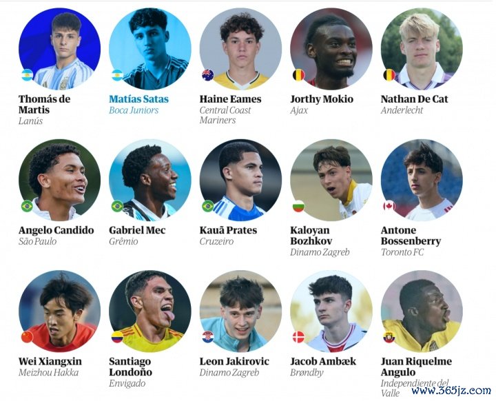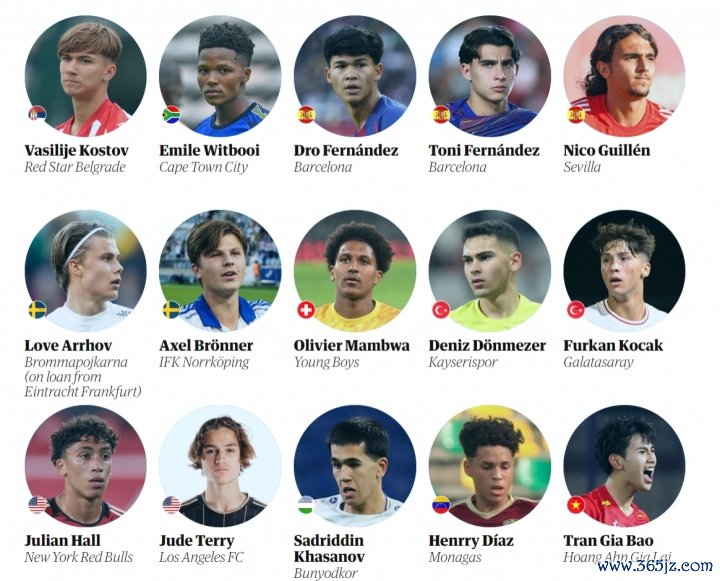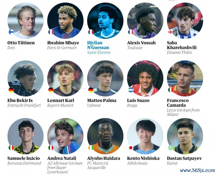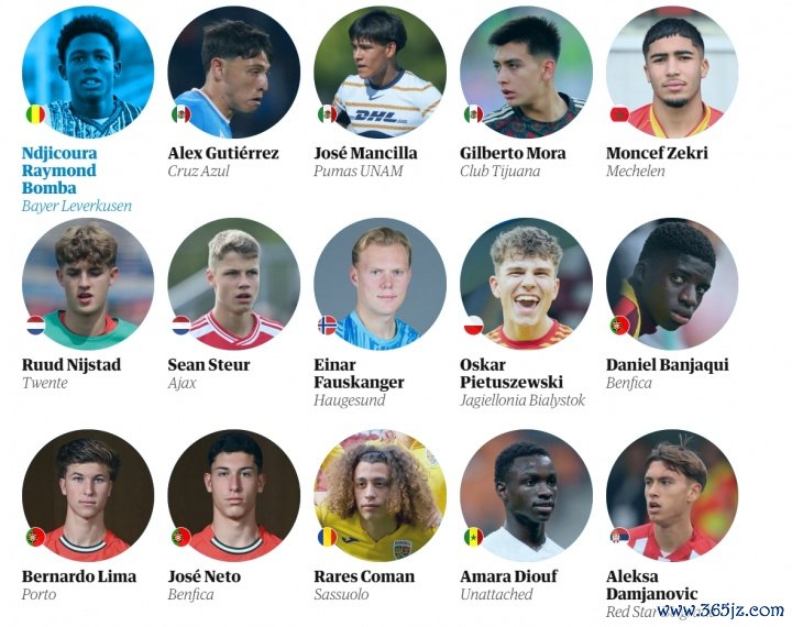 卫报评足坛08年出身60大新星齐备名单(不分排名):