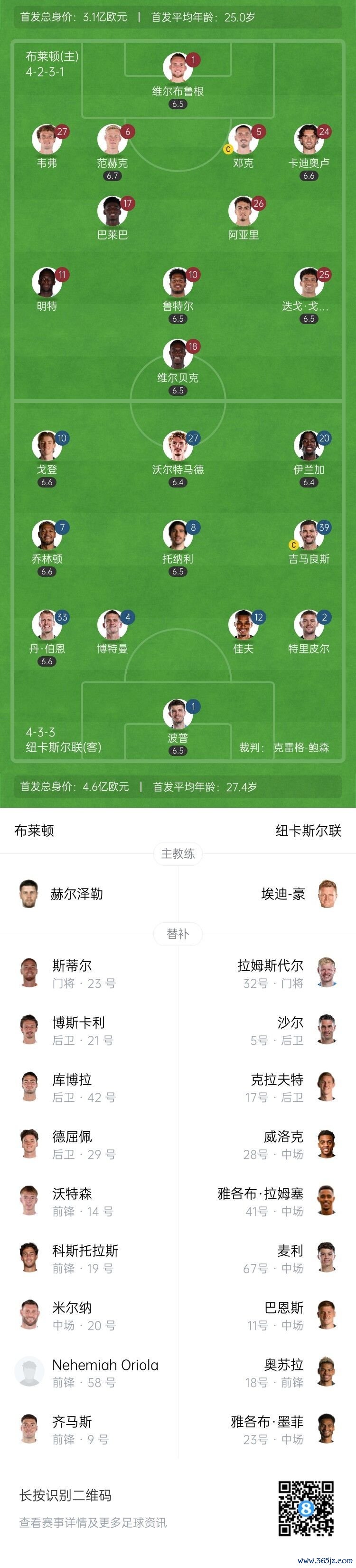 【两边首发以及替补信息】