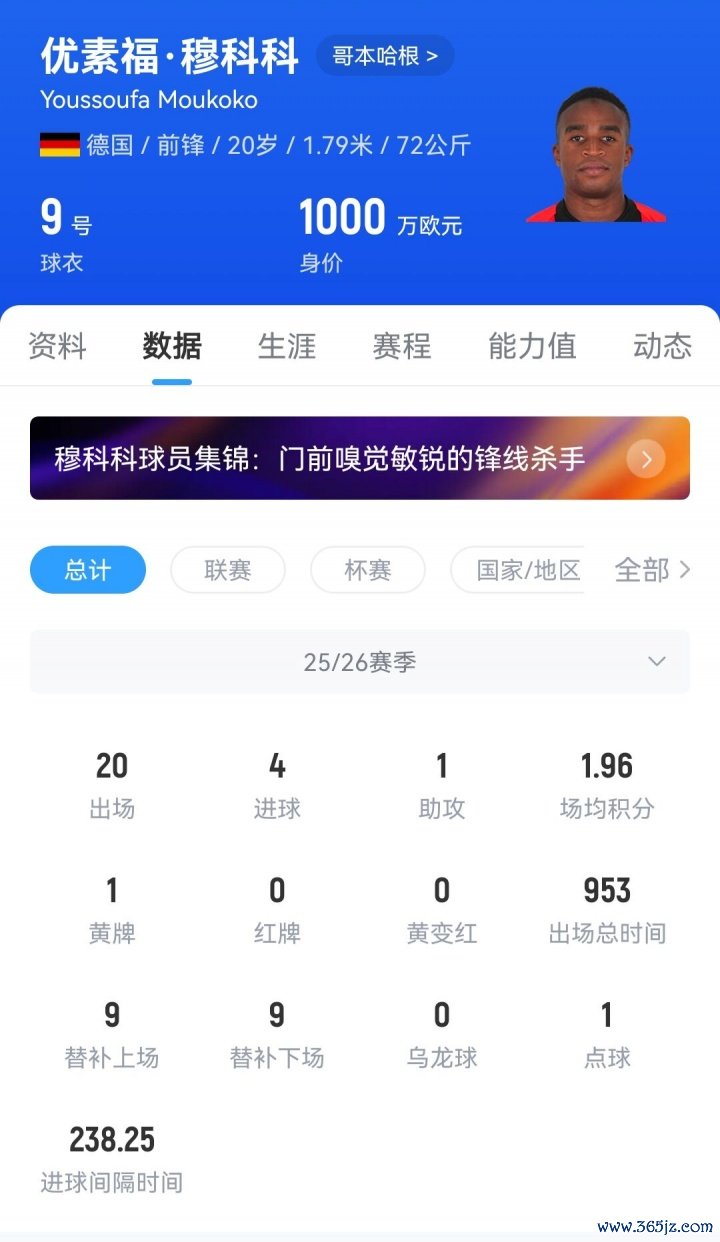 按照官方信息,穆科科下个月就将年满21岁,他当今的德回身价为1000万欧。