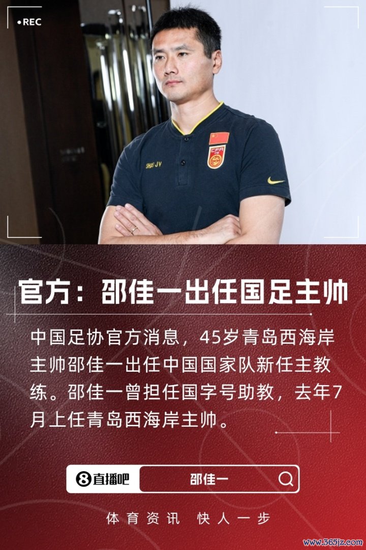 11月5日讯 中国足协官方音信,青岛西海岸主解说、前国脚邵佳一出任中国男足新任主帅。