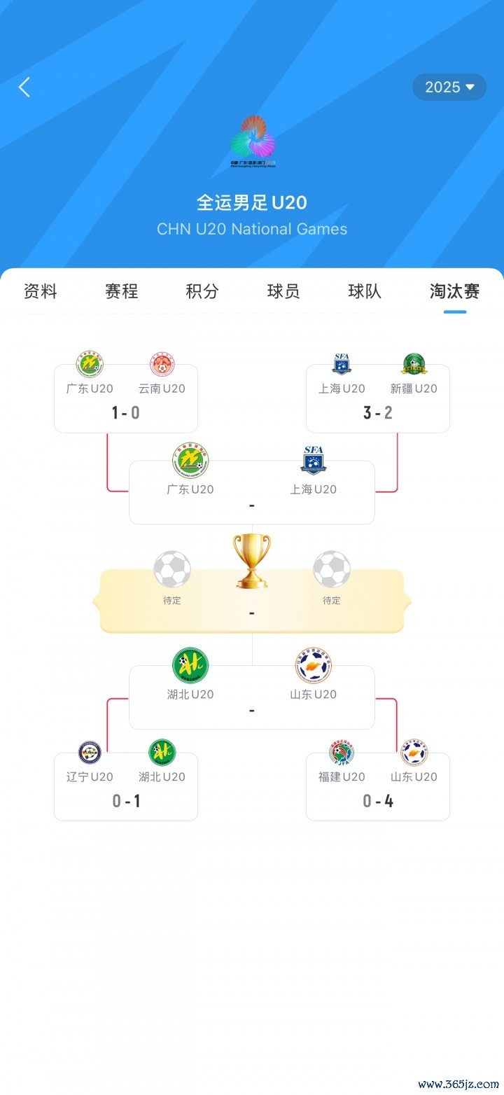 11月08日讯 全运会U20男足1/4决赛今晚同期进行,最终广东、湖北小胜晋级,山东大捷晋级,上海绝杀新疆晋级。