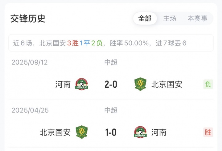 分歧是,河南在主场2-0国安,国何在主场1-0河南。