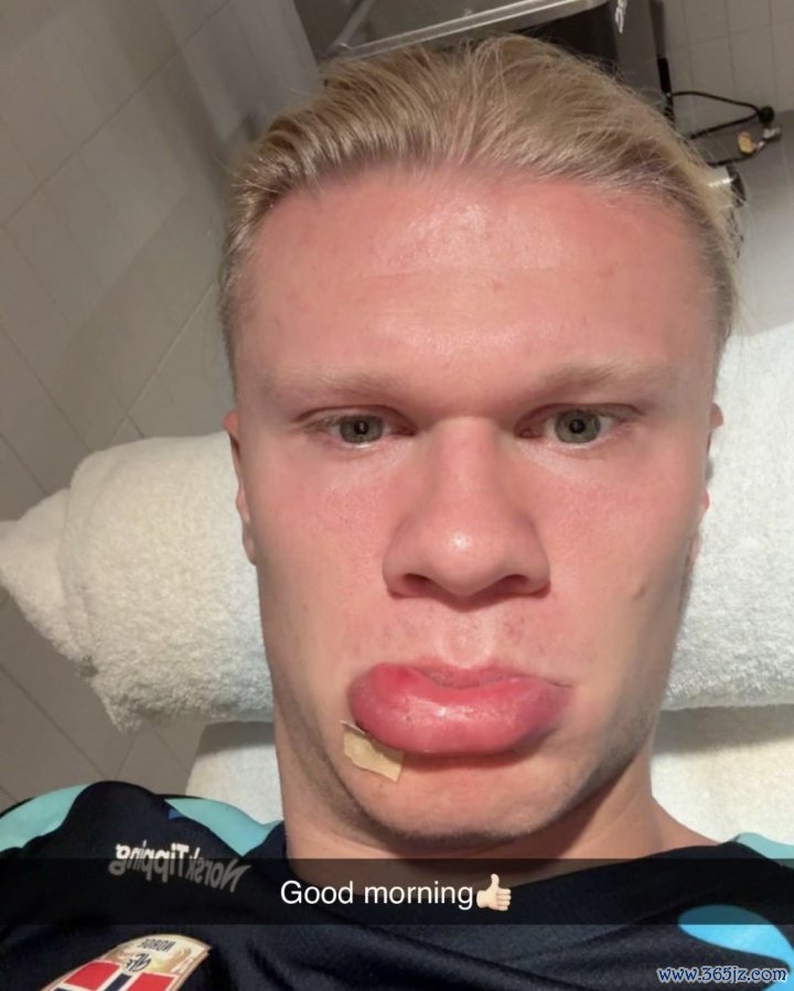 哈兰德周日从球队下榻旅店后门下车时,大巴的行李舱门倏得翻开,击中了他的脸部。哈兰德随后在外交媒体上露馅,他的伤口缝了三针。