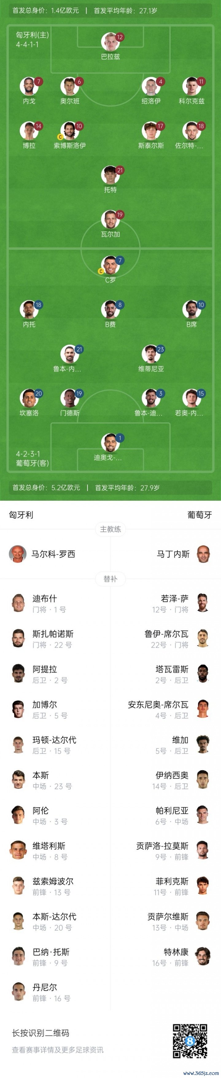9月10日讯 世欧预F组,匈牙利主场迎战葡萄牙比赛行将打响。赛前首发出炉。