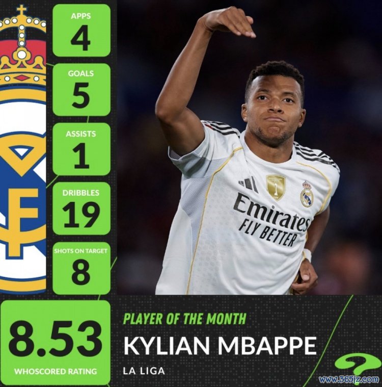 10月1日讯 Whoscored评比的西甲9月最好球员,姆巴佩到手当选。