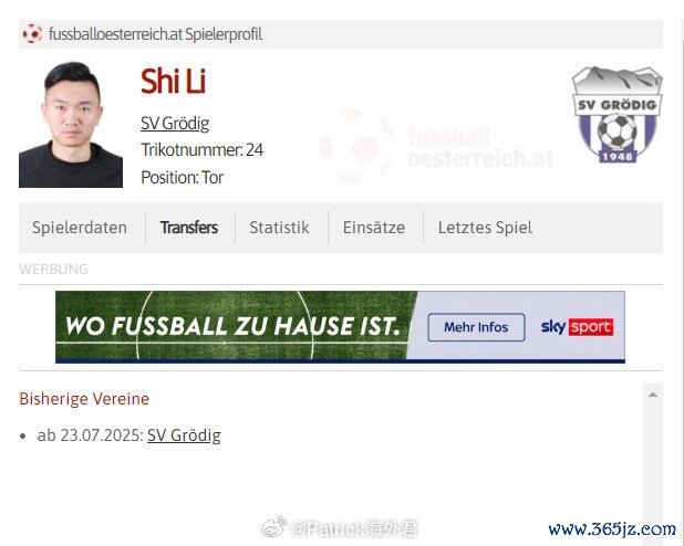 10月5日讯 据媒体东说念主“Patrick外洋君”浮现,前成王人蓉城门将李实加盟奥地利第4级别联赛俱乐部SV格勒迪希。