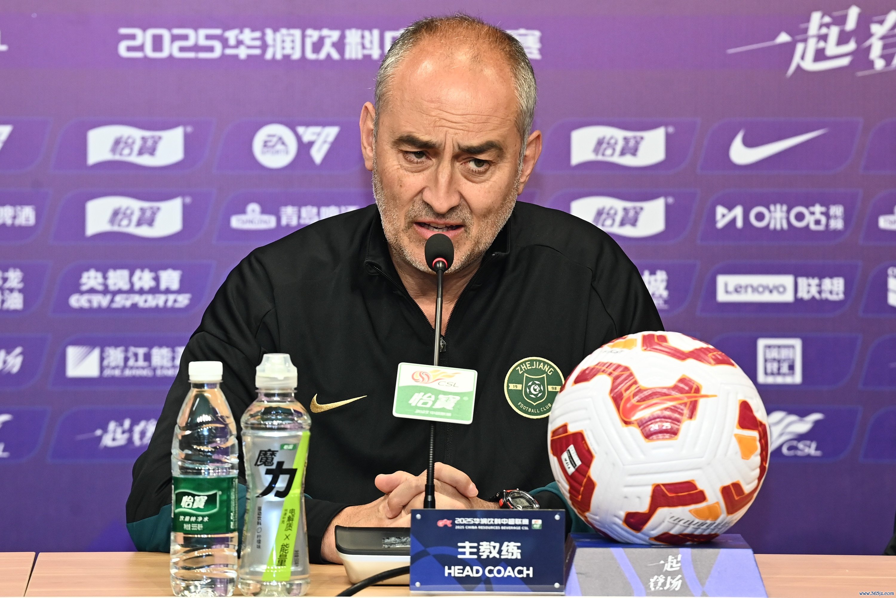 10月24日讯 明晚,中超联赛第28轮浙江队将客场挑战河南队。赛前,浙江队主帅卡内达携球员刘浩帆出席了新闻发布会。