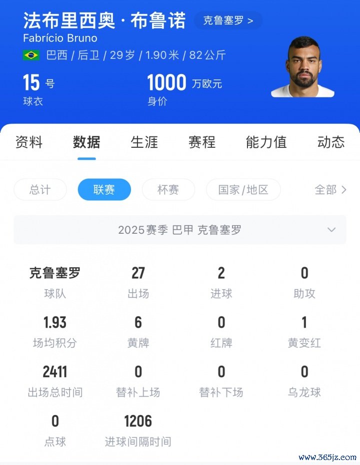 布鲁诺现年29岁,他本赛季于今为克鲁塞罗出场27次,打进2球,在上一轮球队0-0战平帕尔梅拉斯的比赛中,布鲁诺第71分钟两黄变一红被罚下。