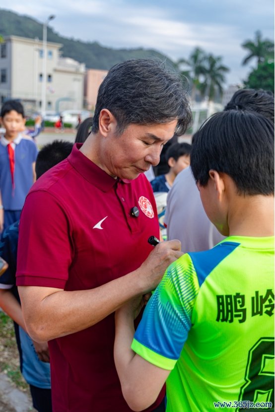 出席完系念行为,彭伟国便又马束缚蹄地赶回到揭阳,准备我方的另一场公益行为——广州岁月明星足球俱乐部传承校园足球公益行(揭西站),他和弟弟彭伟军将为等候在那处的揭西县五云镇鹏岭小学的学生上一堂荒谬的足球公开课。