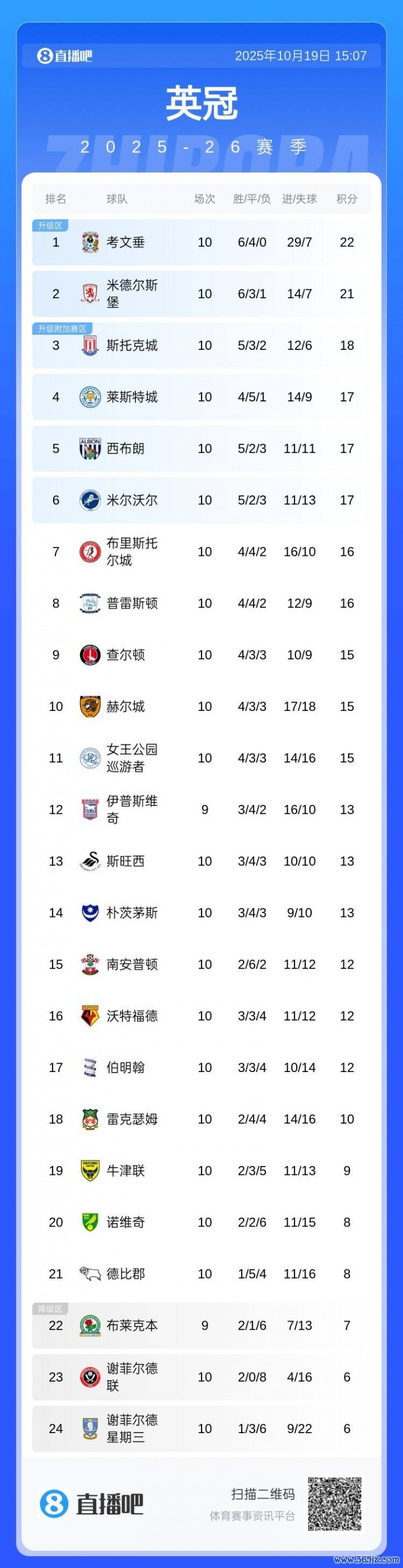 10月19日讯 英冠第10轮比赛,考文垂2-0打败布莱克本,新赛季10轮不败,链接领跑积分榜。