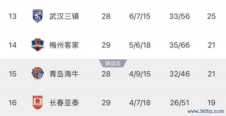 现在的中超积分榜上,亚泰和梅州两队仅剩1轮未赛,两队辞别过期三镇6分和4分,因此三镇提前两场确保不左迁。