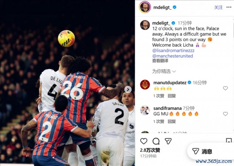 11月30日讯 在曼联2-1打败水晶宫后,德里赫特更新了外交媒体庆祝告成,同期接待队友利马复出。