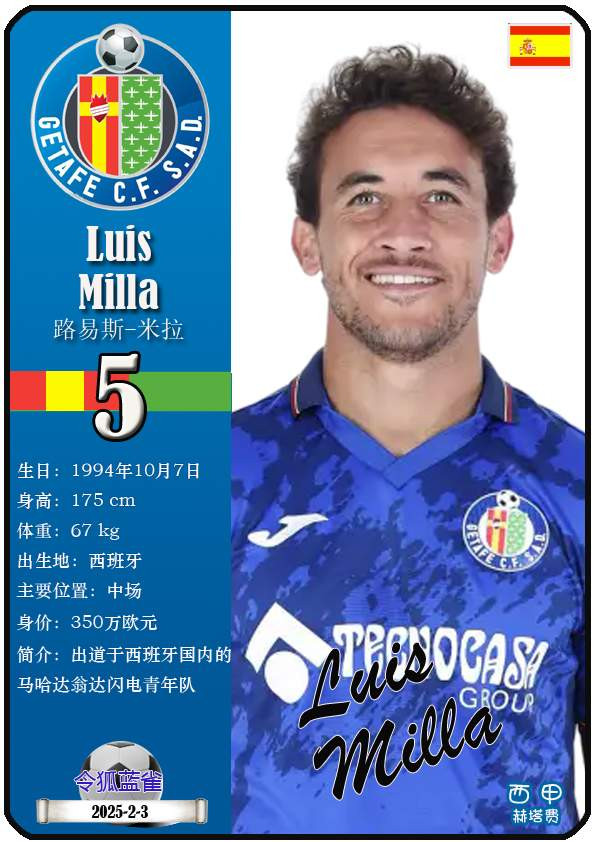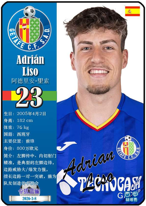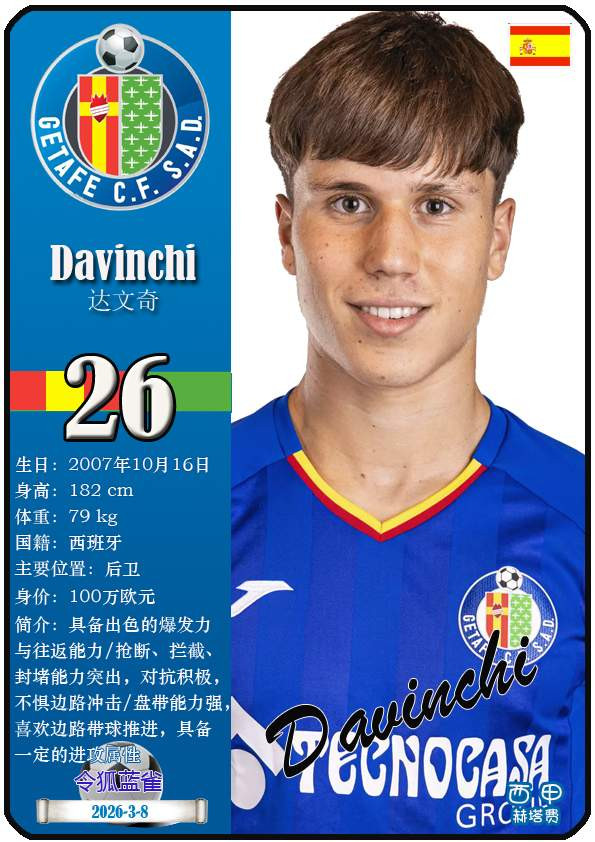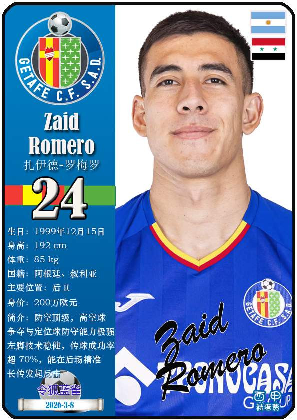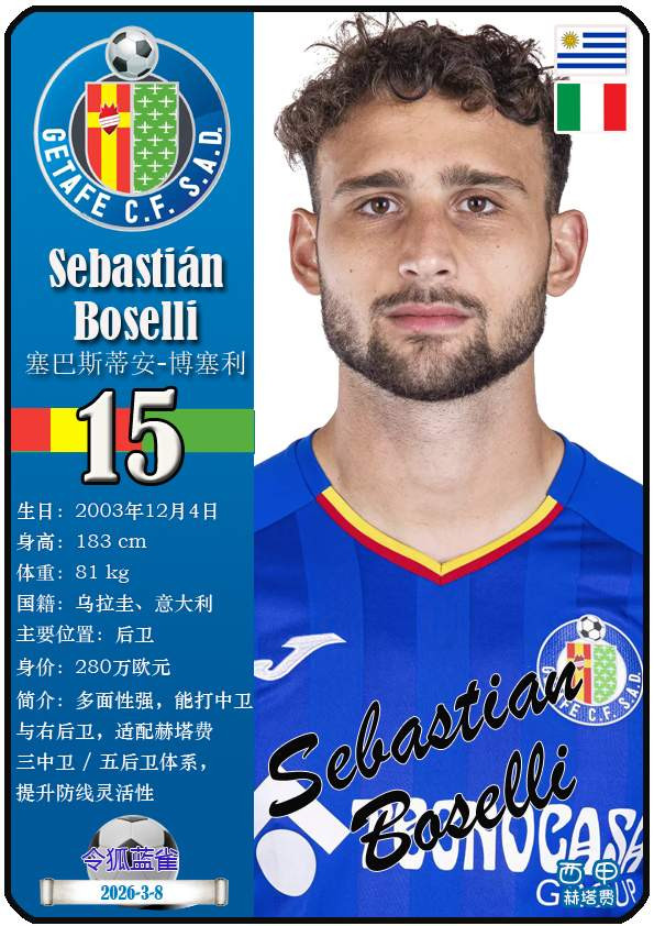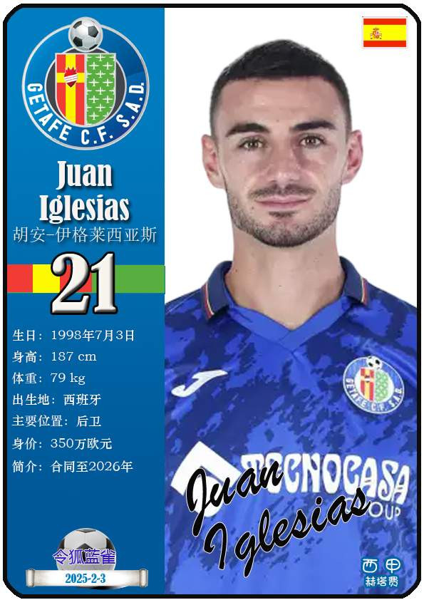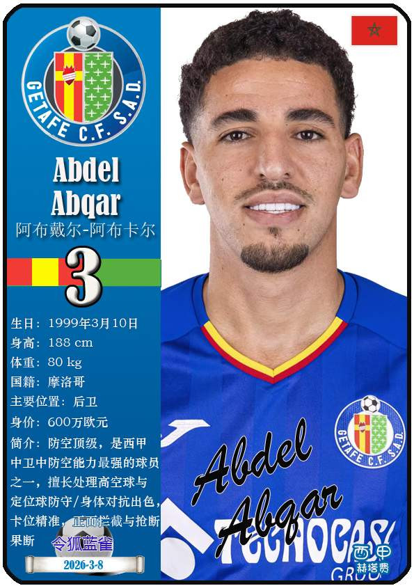 西甲赫塔费篮球足球球队组织成立于1946年,距今已有80年历史。目前队伍足球主教练是佩佩·博尔达拉斯,队内拥有选手马丁-萨特里亚诺、博尔哈-马约拉尔、胡安-米格尔等。本期以知名球员卡的形式展示截至2026年3月9日,西甲赫塔费篮球足球球队组织的24名选手(按运动员编号排序):