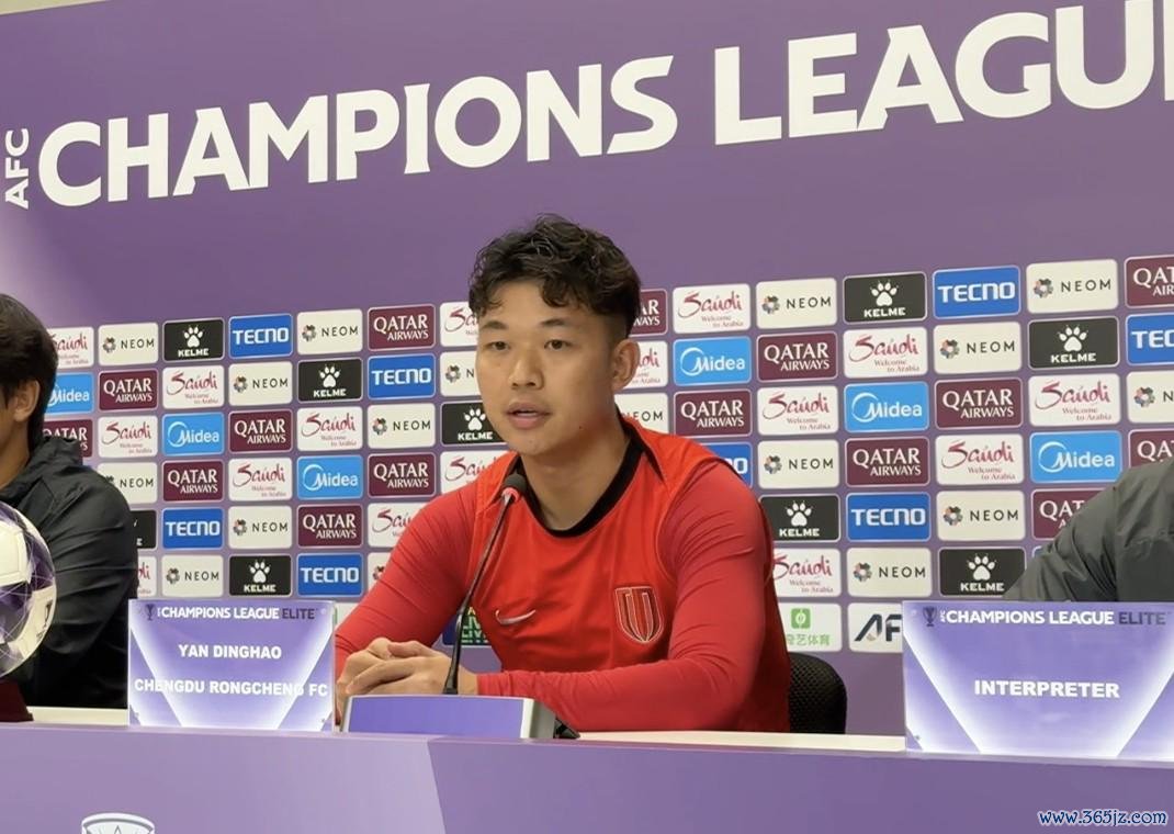 9月29日,成齐蓉城对阵江原FC的赛前新闻发布会,球员严鼎皓随主帅徐正源出席。