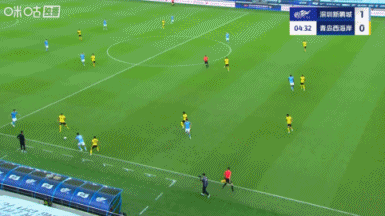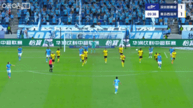 深圳新鹏城球员张卫凌空扣门踢跐,送给西海岸队快速反击。戴维森持球杀入禁区,大略搓射破门,西海岸队快速将比分追成1-1!