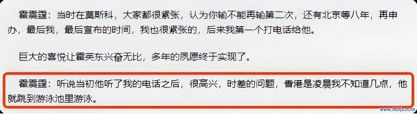 当年北京申奥收效那一刻,霍英东慷慨难抑,独自前去泳池畅游一圈以示庆祝;霍震霆则在一旁用劲拍打大腿,喜形于色。父子抒发风景不同,但那份对体育的诚挚爱重如出一辙。