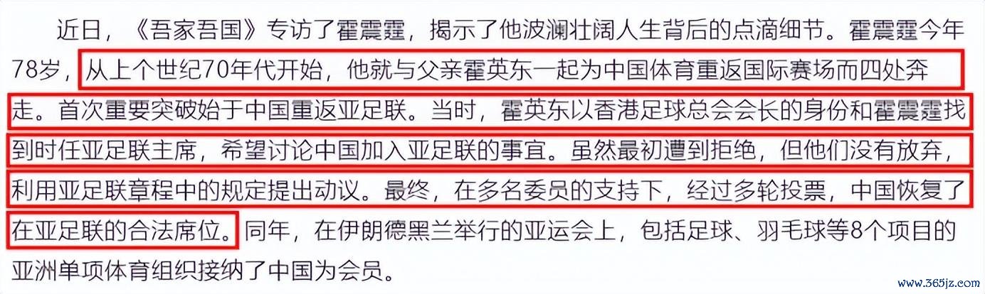 参考辛苦:中国日报网《霍震霆荣获亚洲足球联会最高荣誉——“亚洲钻石奖”》
